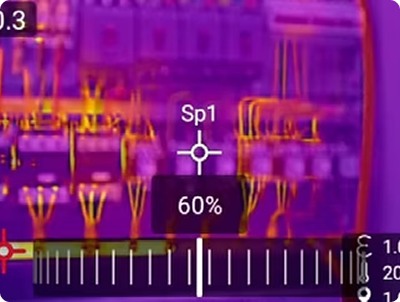 Exclusive T-DEF® visible-light temperature measurement with infrared transparency adjustable from 0%–100%, automatically aligned with IR imaging.
